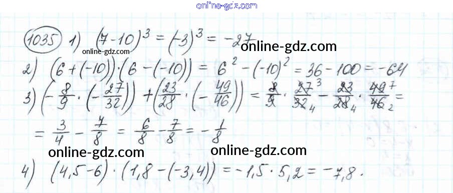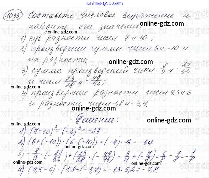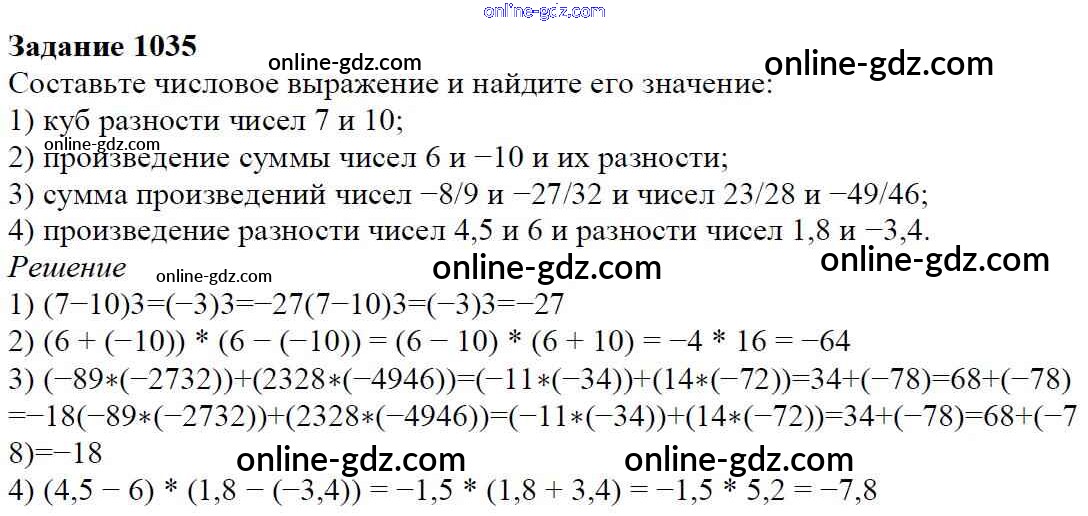 Готовые домашние задания по Математике за 6 класс Учебник Мерзляк, Полонский Алгоритм успеха 2016 - Глава 4. Рациональные числа и действия над ними (упражнения) 1035