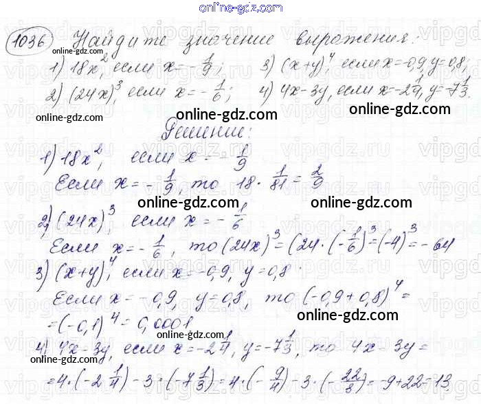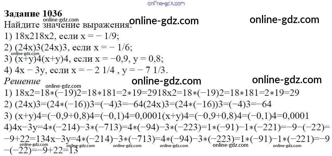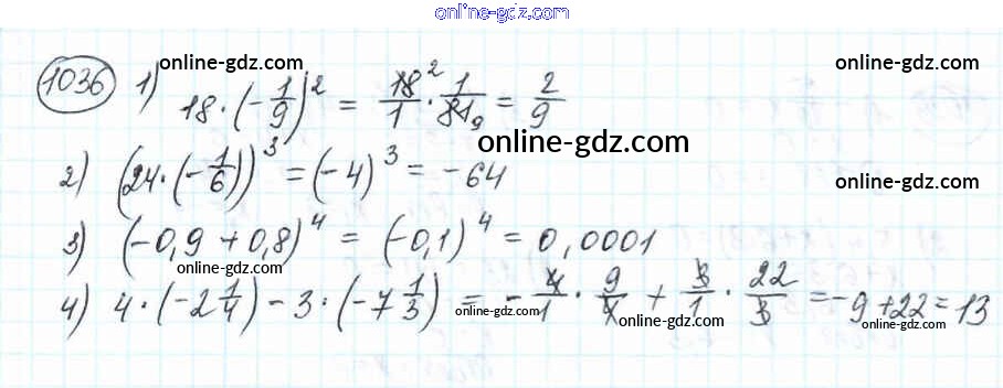 Готовые домашние задания по Математике за 6 класс Учебник Мерзляк, Полонский Алгоритм успеха 2016 - Глава 4. Рациональные числа и действия над ними (упражнения) 1036