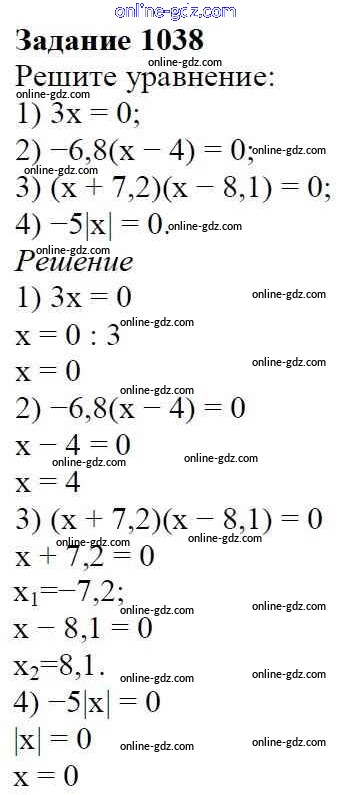 Готовые домашние задания по Математике за 6 класс Учебник Мерзляк, Полонский Алгоритм успеха 2016 - Глава 4. Рациональные числа и действия над ними (упражнения) 1038