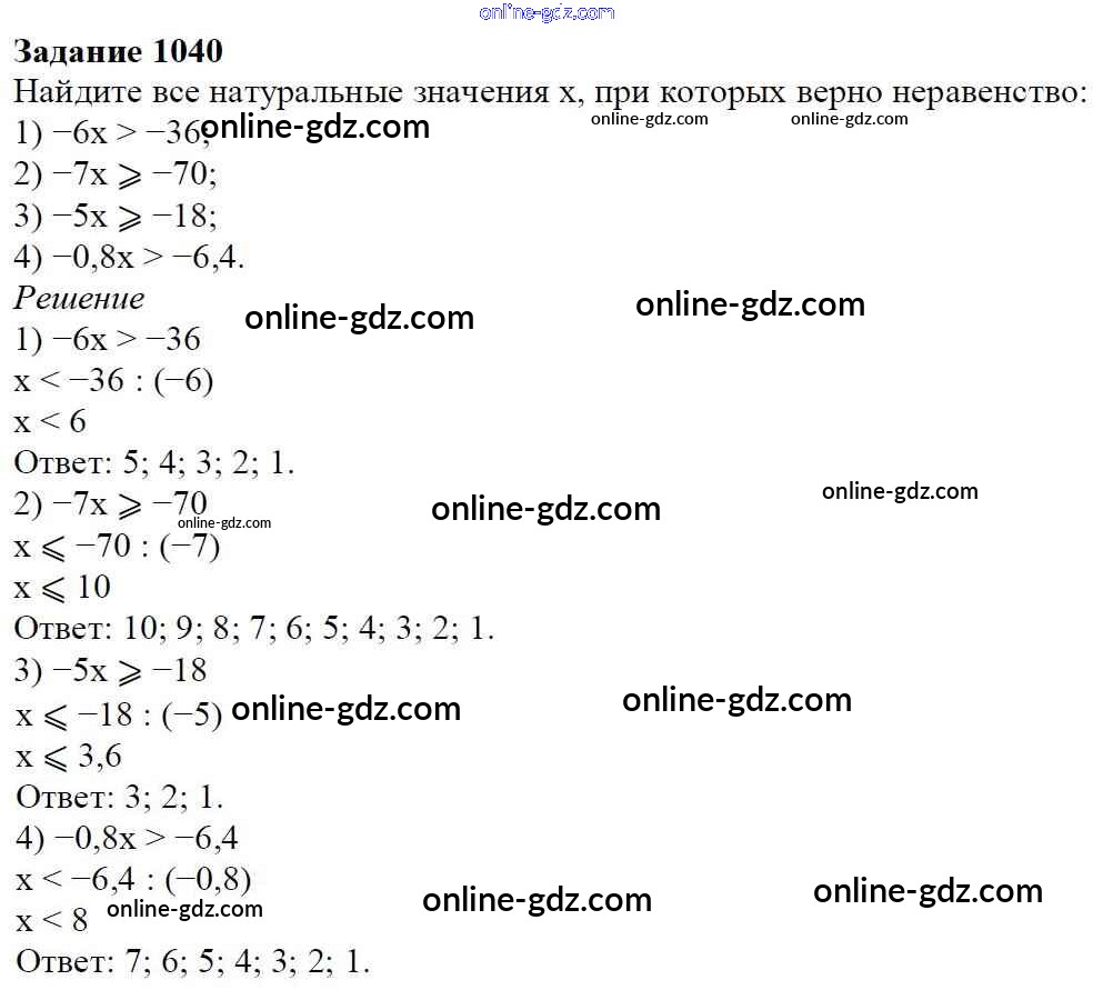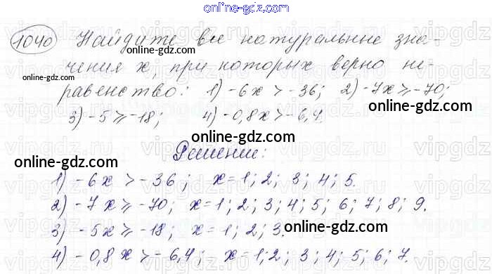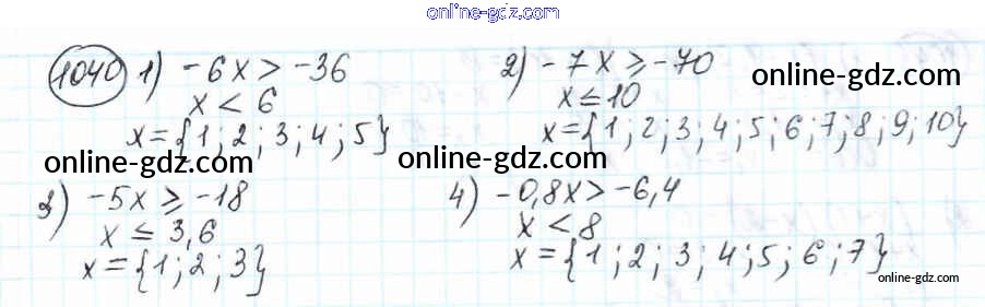 Готовые домашние задания по Математике за 6 класс Учебник Мерзляк, Полонский Алгоритм успеха 2016 - Глава 4. Рациональные числа и действия над ними (упражнения) 1040