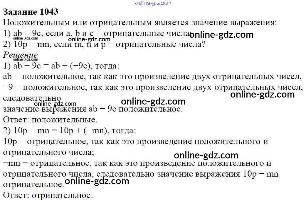 Готовые домашние задания по Математике за 6 класс Учебник Мерзляк, Полонский Алгоритм успеха 2016 - Глава 4. Рациональные числа и действия над ними (упражнения) 1043
