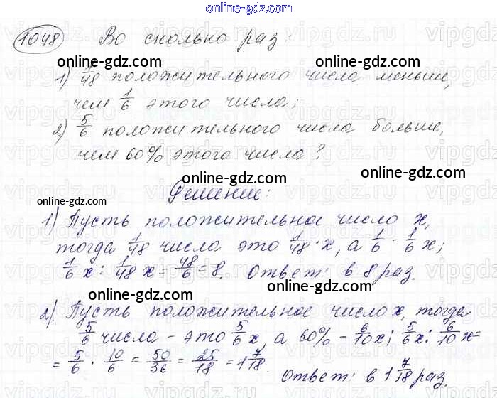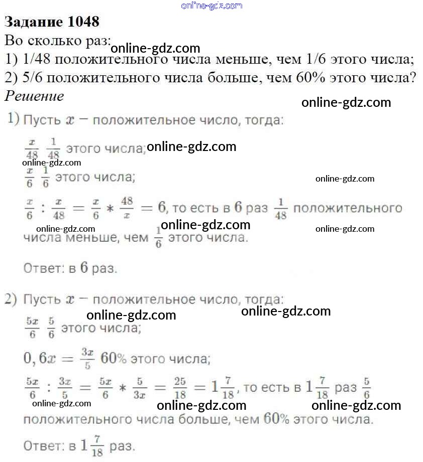 Готовые домашние задания по Математике за 6 класс Учебник Мерзляк, Полонский Алгоритм успеха 2016 - Глава 4. Рациональные числа и действия над ними (упражнения) 1048