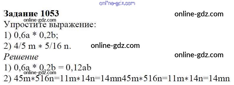 Готовые домашние задания по Математике за 6 класс Учебник Мерзляк, Полонский Алгоритм успеха 2016 - Глава 4. Рациональные числа и действия над ними (упражнения) 1053