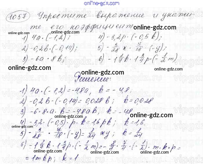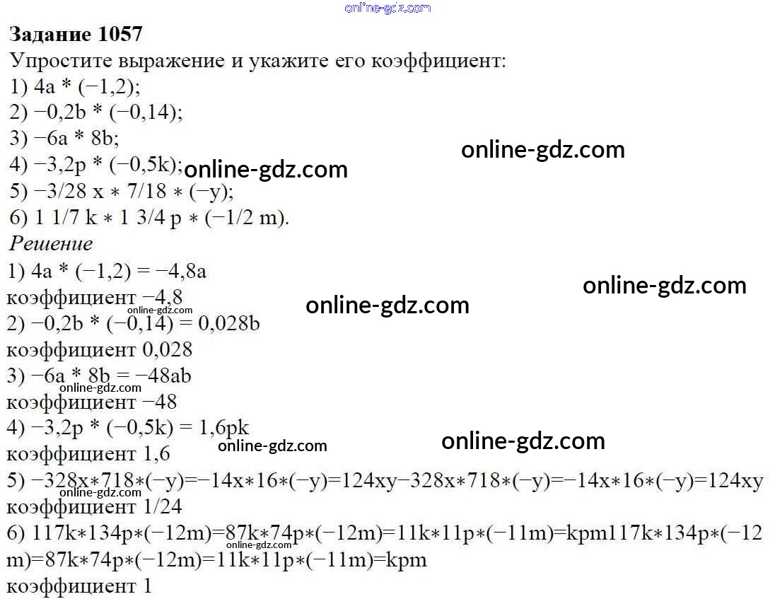 Готовые домашние задания по Математике за 6 класс Учебник Мерзляк, Полонский Алгоритм успеха 2016 - Глава 4. Рациональные числа и действия над ними (упражнения) 1057