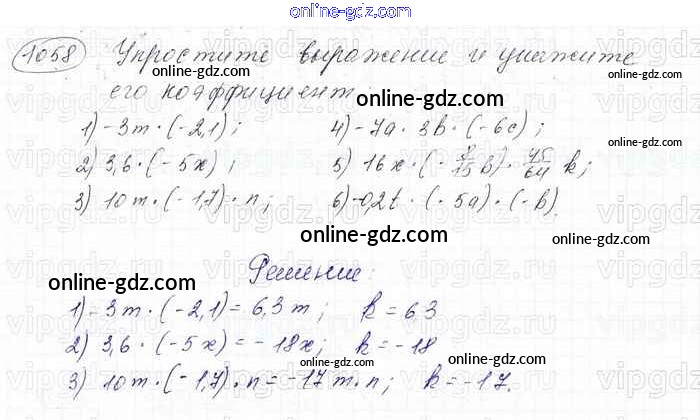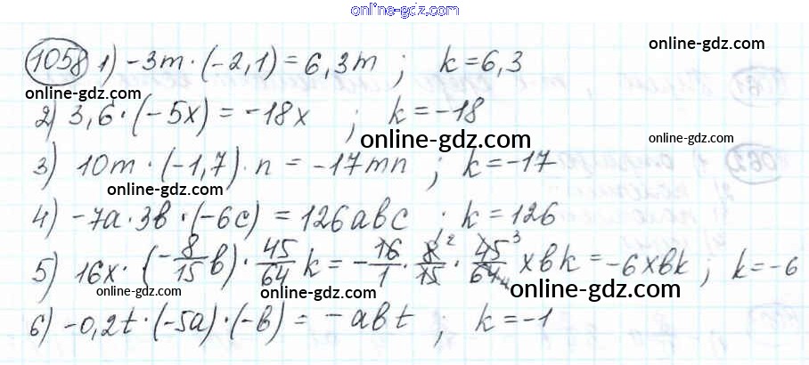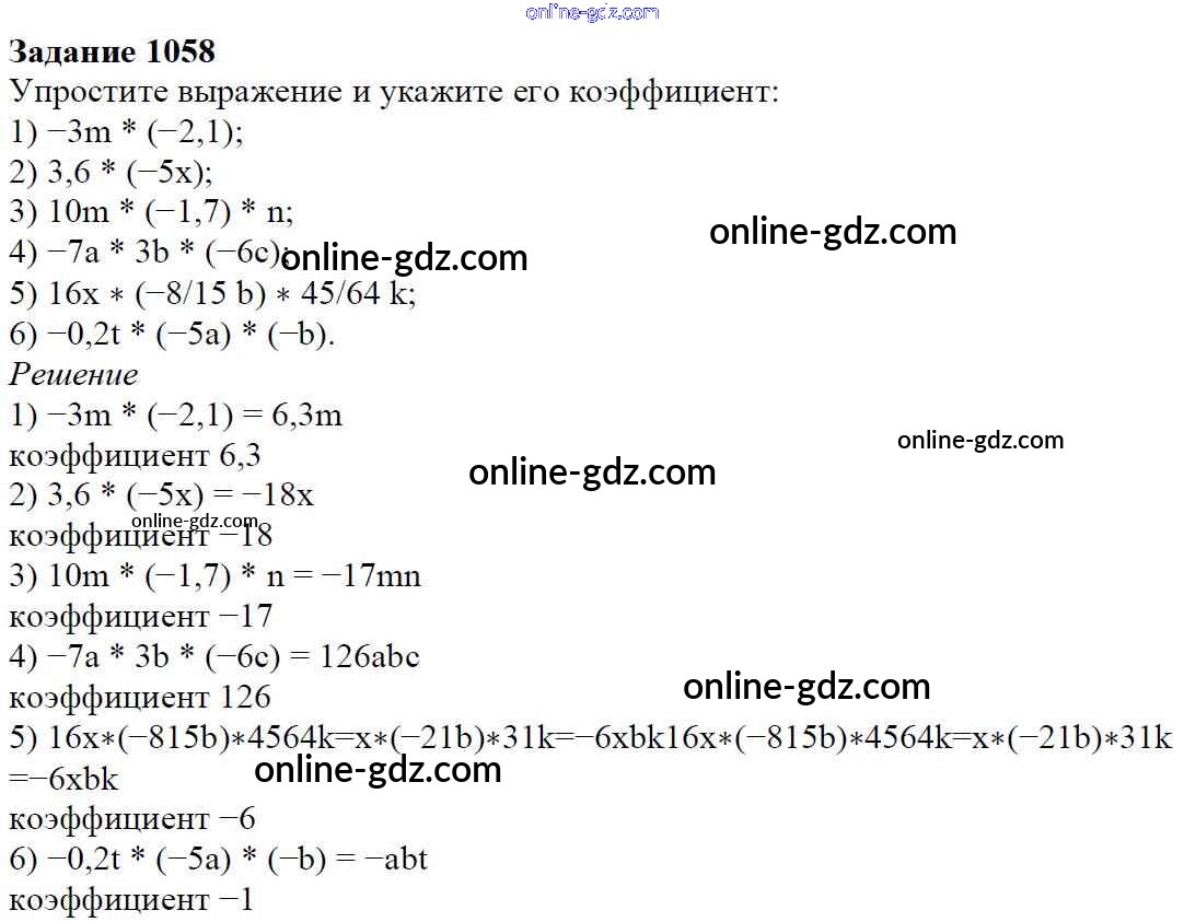 Готовые домашние задания по Математике за 6 класс Учебник Мерзляк, Полонский Алгоритм успеха 2016 - Глава 4. Рациональные числа и действия над ними (упражнения) 1058