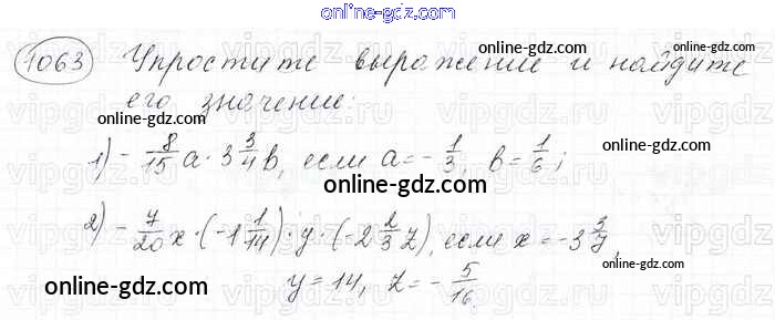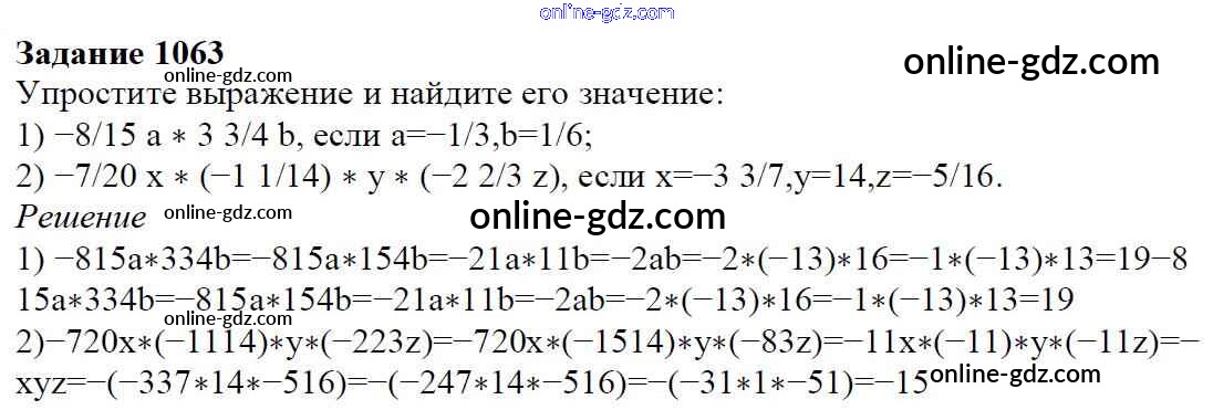 Готовые домашние задания по Математике за 6 класс Учебник Мерзляк, Полонский Алгоритм успеха 2016 - Глава 4. Рациональные числа и действия над ними (упражнения) 1063