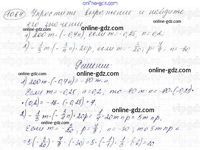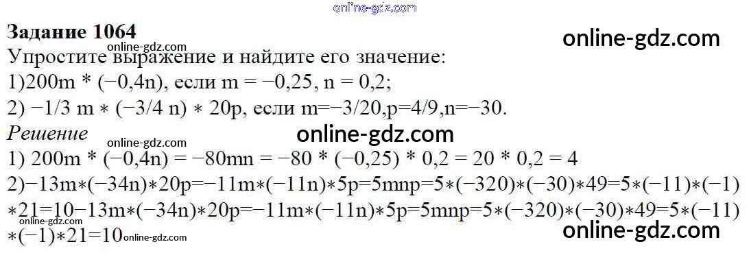 Готовые домашние задания по Математике за 6 класс Учебник Мерзляк, Полонский Алгоритм успеха 2016 - Глава 4. Рациональные числа и действия над ними (упражнения) 1064