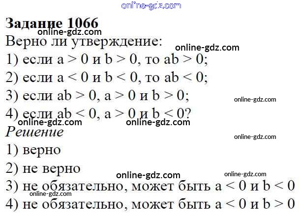 Готовые домашние задания по Математике за 6 класс Учебник Мерзляк, Полонский Алгоритм успеха 2016 - Глава 4. Рациональные числа и действия над ними (упражнения) 1066
