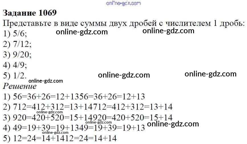 Готовые домашние задания по Математике за 6 класс Учебник Мерзляк, Полонский Алгоритм успеха 2016 - Глава 4. Рациональные числа и действия над ними (упражнения) 1069
