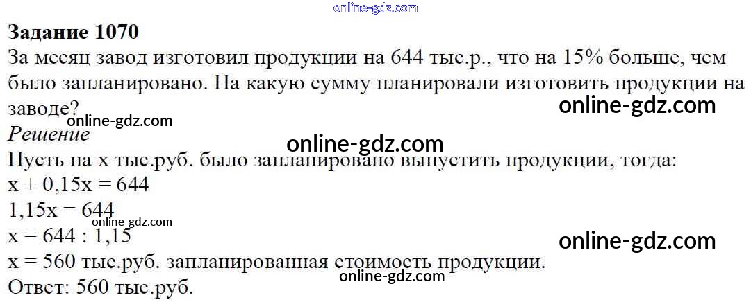 Готовые домашние задания по Математике за 6 класс Учебник Мерзляк, Полонский Алгоритм успеха 2016 - Глава 4. Рациональные числа и действия над ними (упражнения) 1070