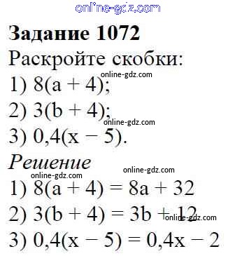 Готовые домашние задания по Математике за 6 класс Учебник Мерзляк, Полонский Алгоритм успеха 2016 - Глава 4. Рациональные числа и действия над ними (упражнения) 1072