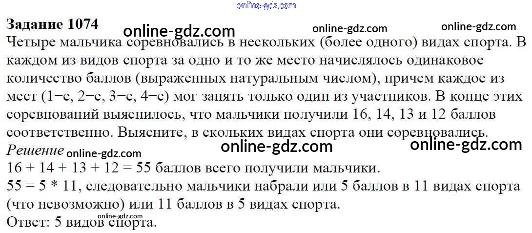 Готовые домашние задания по Математике за 6 класс Учебник Мерзляк, Полонский Алгоритм успеха 2016 - Глава 4. Рациональные числа и действия над ними (упражнения) 1074