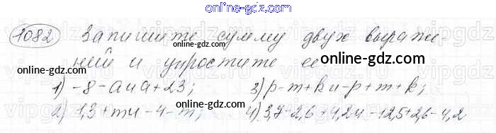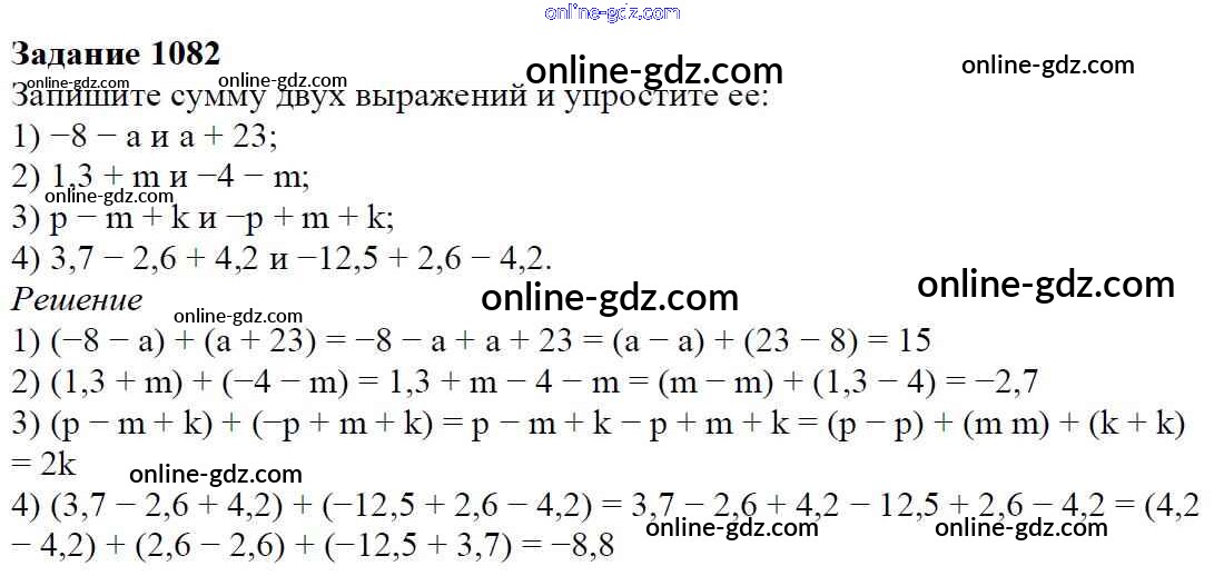 Готовые домашние задания по Математике за 6 класс Учебник Мерзляк, Полонский Алгоритм успеха 2016 - Глава 4. Рациональные числа и действия над ними (упражнения) 1082