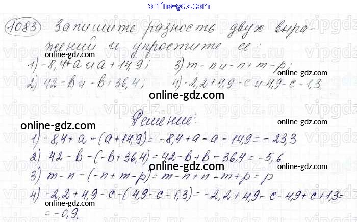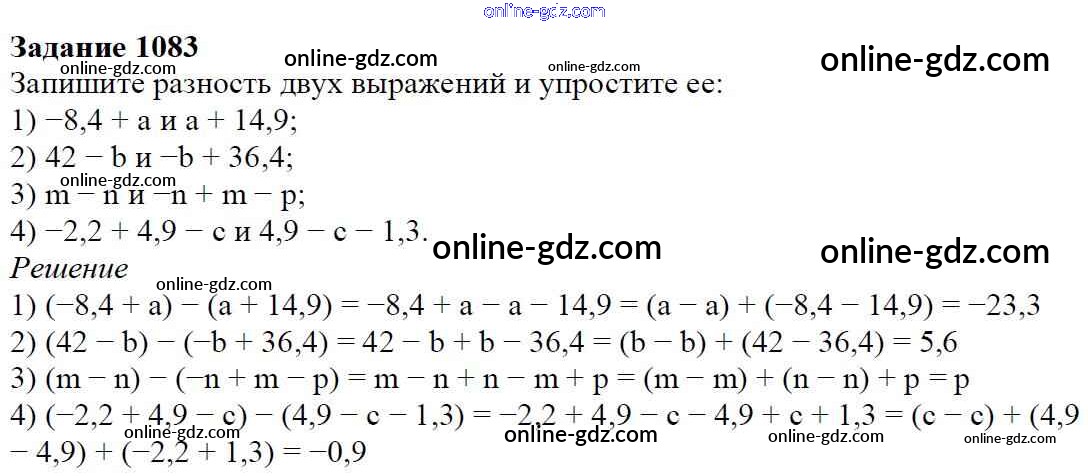 Готовые домашние задания по Математике за 6 класс Учебник Мерзляк, Полонский Алгоритм успеха 2016 - Глава 4. Рациональные числа и действия над ними (упражнения) 1083