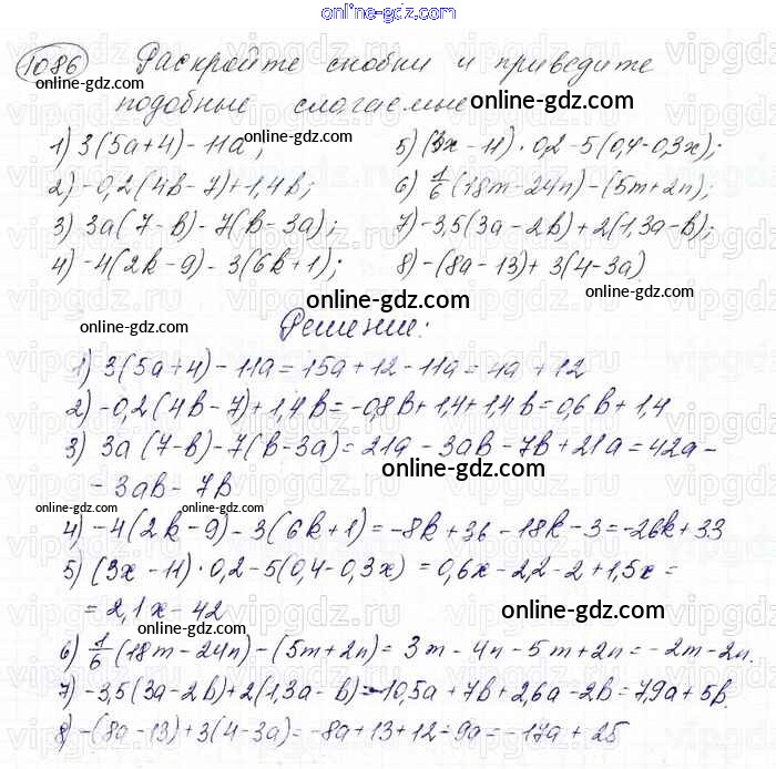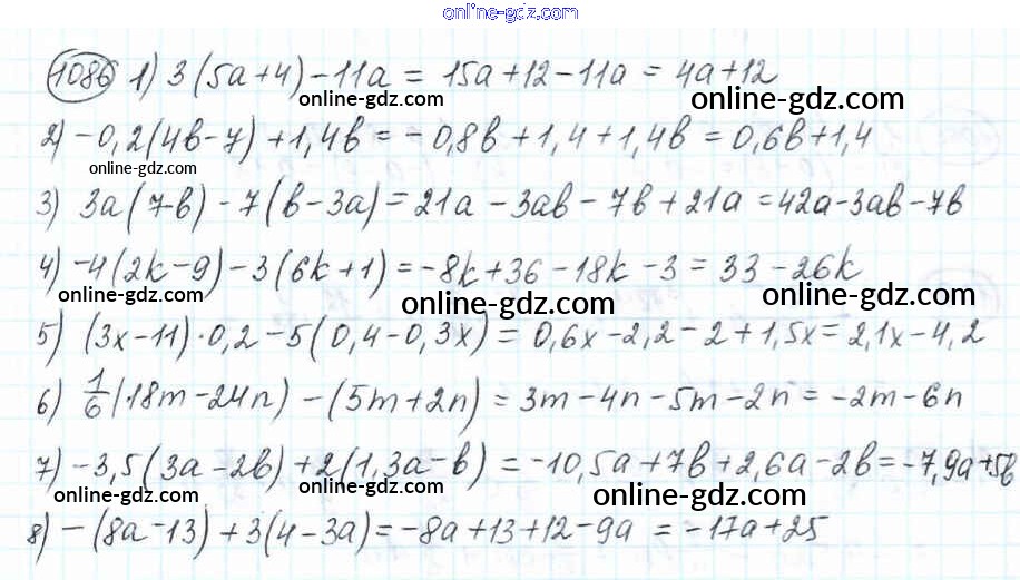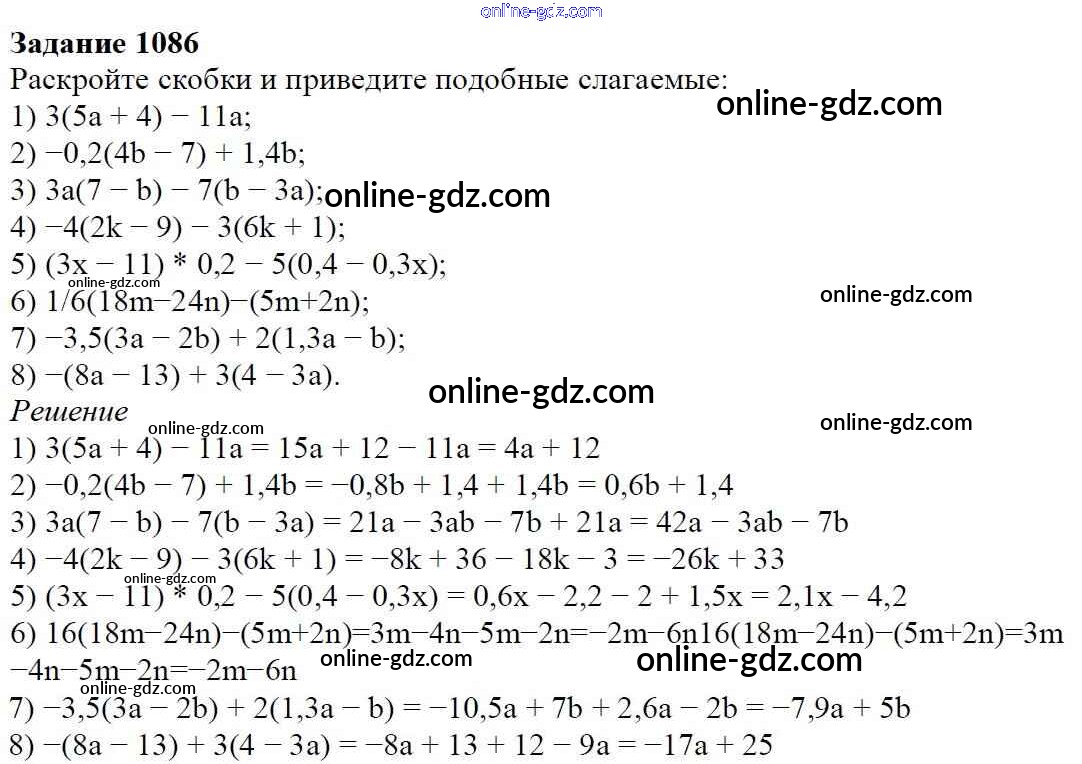 Готовые домашние задания по Математике за 6 класс Учебник Мерзляк, Полонский Алгоритм успеха 2016 - Глава 4. Рациональные числа и действия над ними (упражнения) 1086