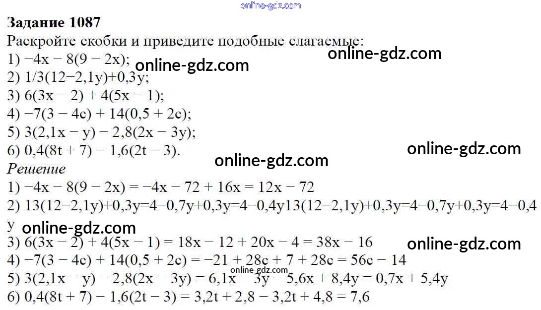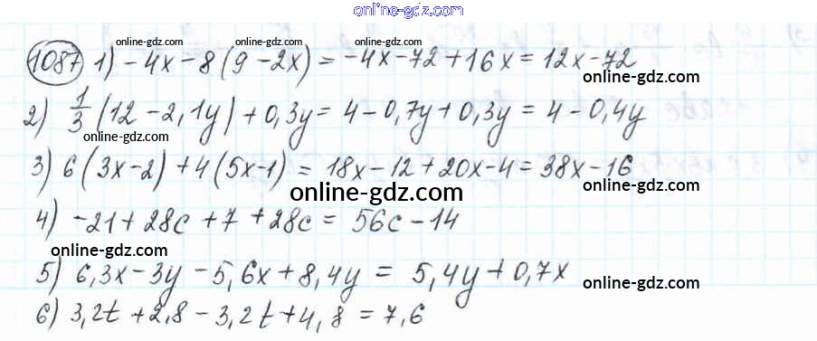 Готовые домашние задания по Математике за 6 класс Учебник Мерзляк, Полонский Алгоритм успеха 2016 - Глава 4. Рациональные числа и действия над ними (упражнения) 1087