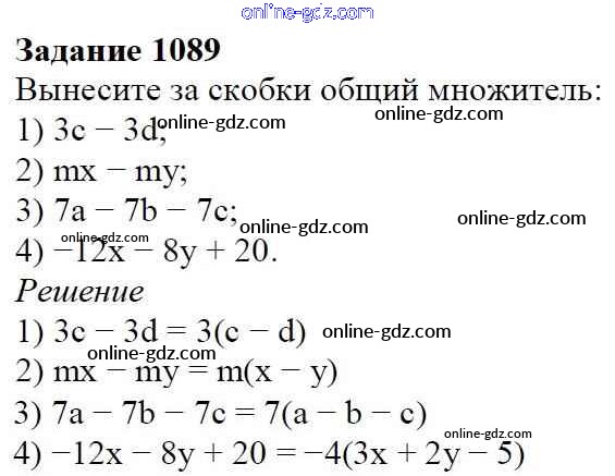 Готовые домашние задания по Математике за 6 класс Учебник Мерзляк, Полонский Алгоритм успеха 2016 - Глава 4. Рациональные числа и действия над ними (упражнения) 1089