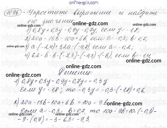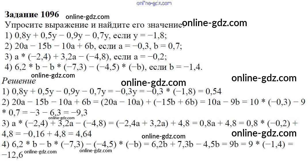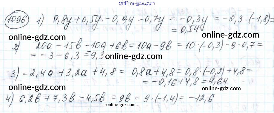 Готовые домашние задания по Математике за 6 класс Учебник Мерзляк, Полонский Алгоритм успеха 2016 - Глава 4. Рациональные числа и действия над ними (упражнения) 1096