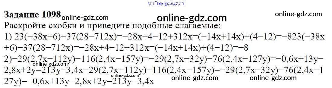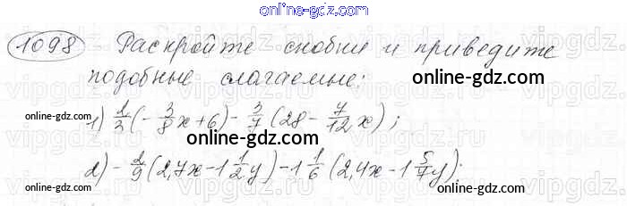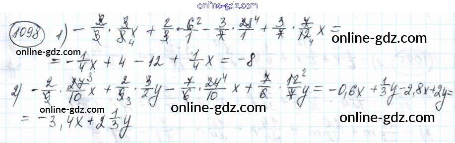 Готовые домашние задания по Математике за 6 класс Учебник Мерзляк, Полонский Алгоритм успеха 2016 - Глава 4. Рациональные числа и действия над ними (упражнения) 1098