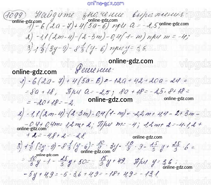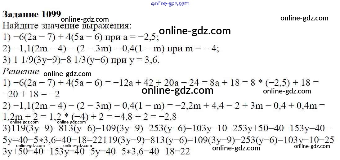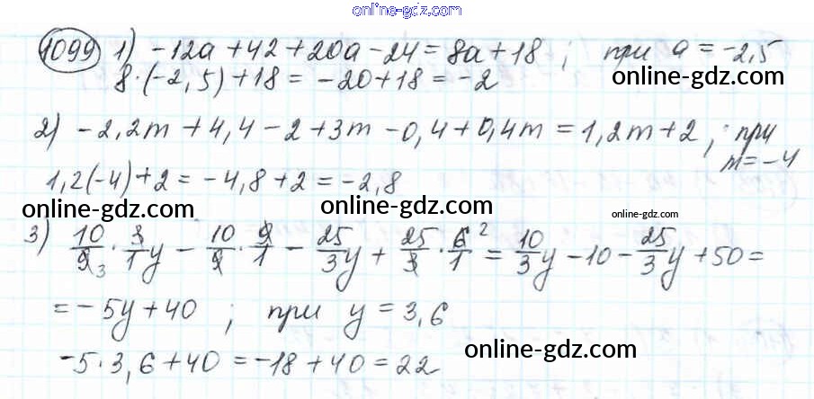 Готовые домашние задания по Математике за 6 класс Учебник Мерзляк, Полонский Алгоритм успеха 2016 - Глава 4. Рациональные числа и действия над ними (упражнения) 1099