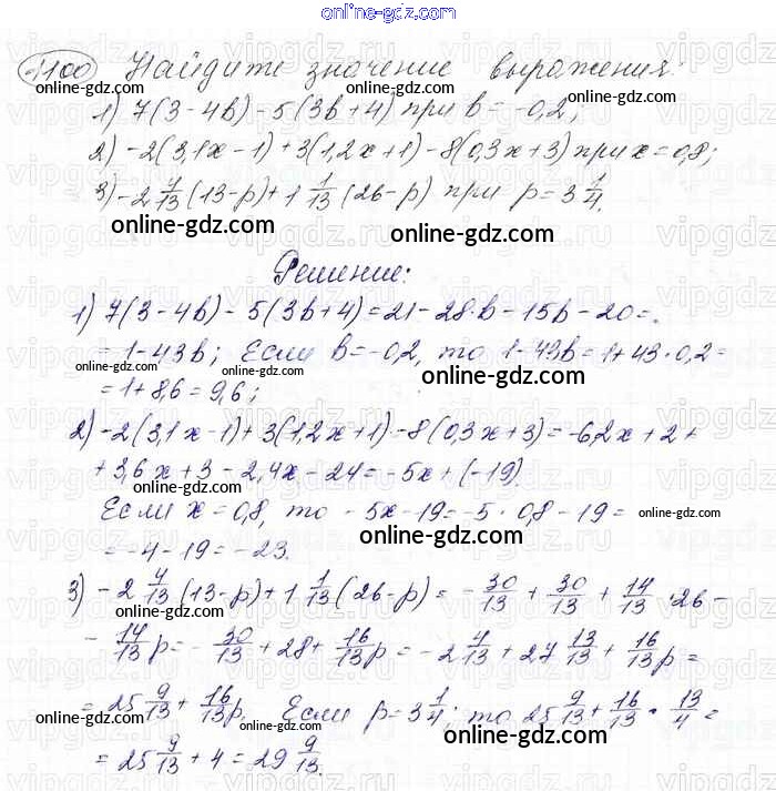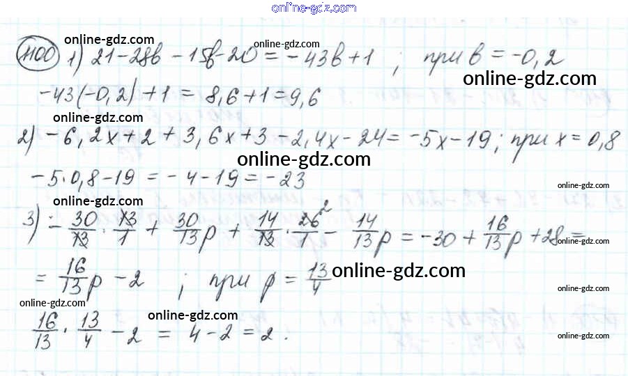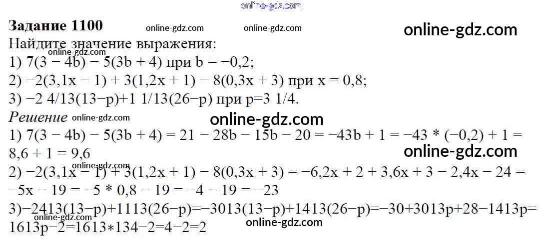 Готовые домашние задания по Математике за 6 класс Учебник Мерзляк, Полонский Алгоритм успеха 2016 - Глава 4. Рациональные числа и действия над ними (упражнения) 1100