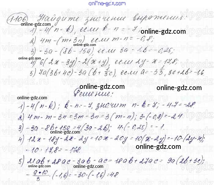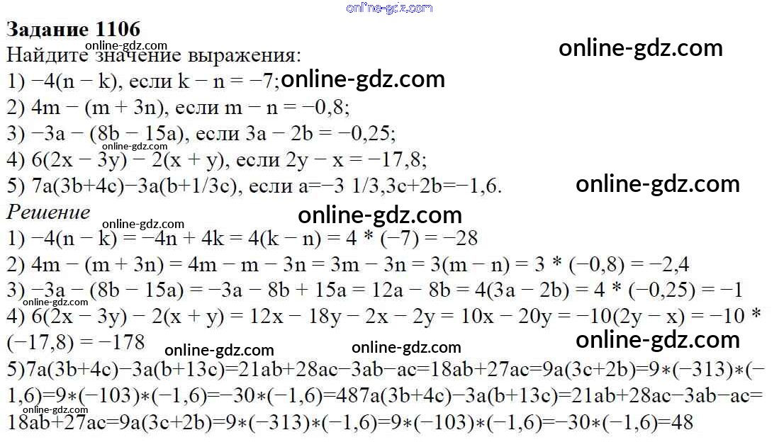Готовые домашние задания по Математике за 6 класс Учебник Мерзляк, Полонский Алгоритм успеха 2016 - Глава 4. Рациональные числа и действия над ними (упражнения) 1106