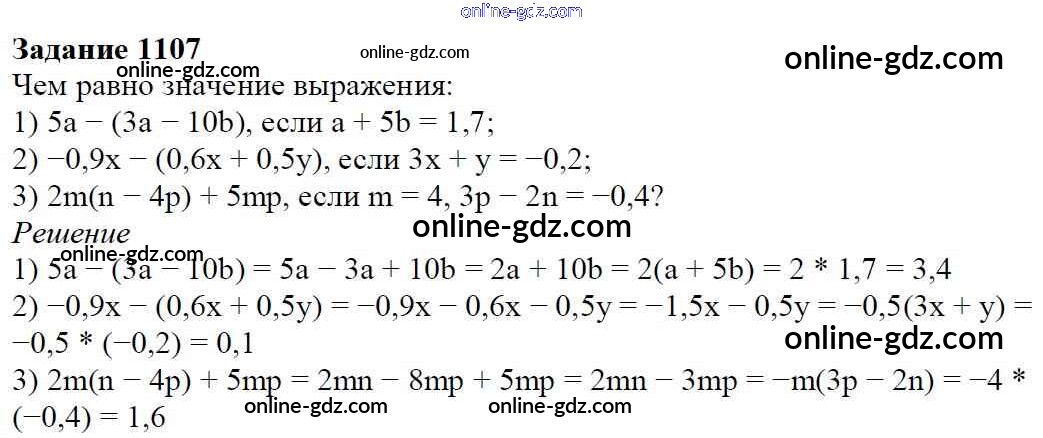 Готовые домашние задания по Математике за 6 класс Учебник Мерзляк, Полонский Алгоритм успеха 2016 - Глава 4. Рациональные числа и действия над ними (упражнения) 1107