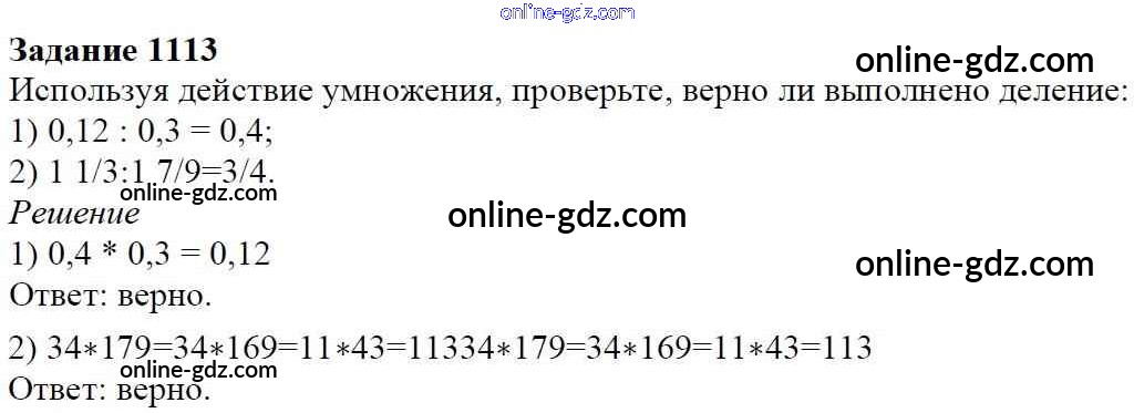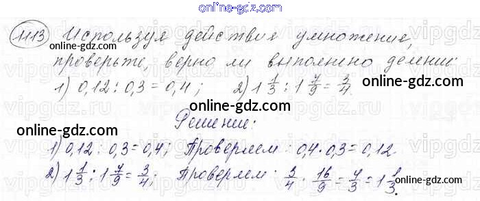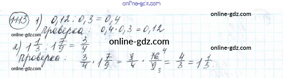 Готовые домашние задания по Математике за 6 класс Учебник Мерзляк, Полонский Алгоритм успеха 2016 - Глава 4. Рациональные числа и действия над ними (упражнения) 1113