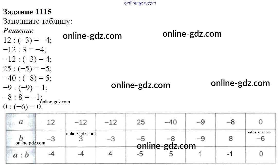 Готовые домашние задания по Математике за 6 класс Учебник Мерзляк, Полонский Алгоритм успеха 2016 - Глава 4. Рациональные числа и действия над ними (упражнения) 1115