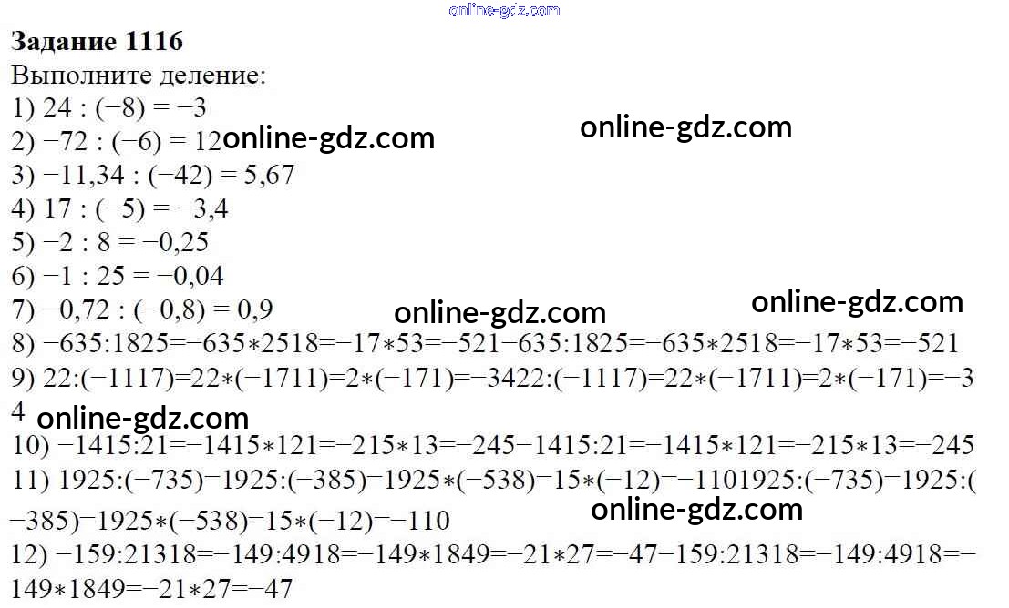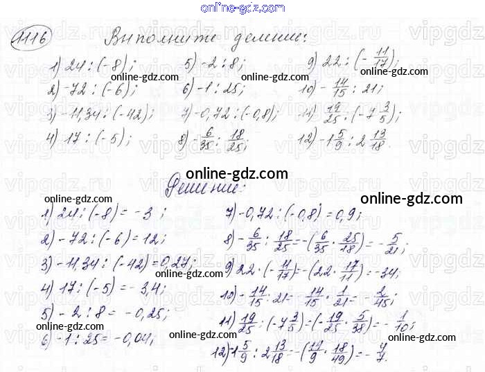 Готовые домашние задания по Математике за 6 класс Учебник Мерзляк, Полонский Алгоритм успеха 2016 - Глава 4. Рациональные числа и действия над ними (упражнения) 1116