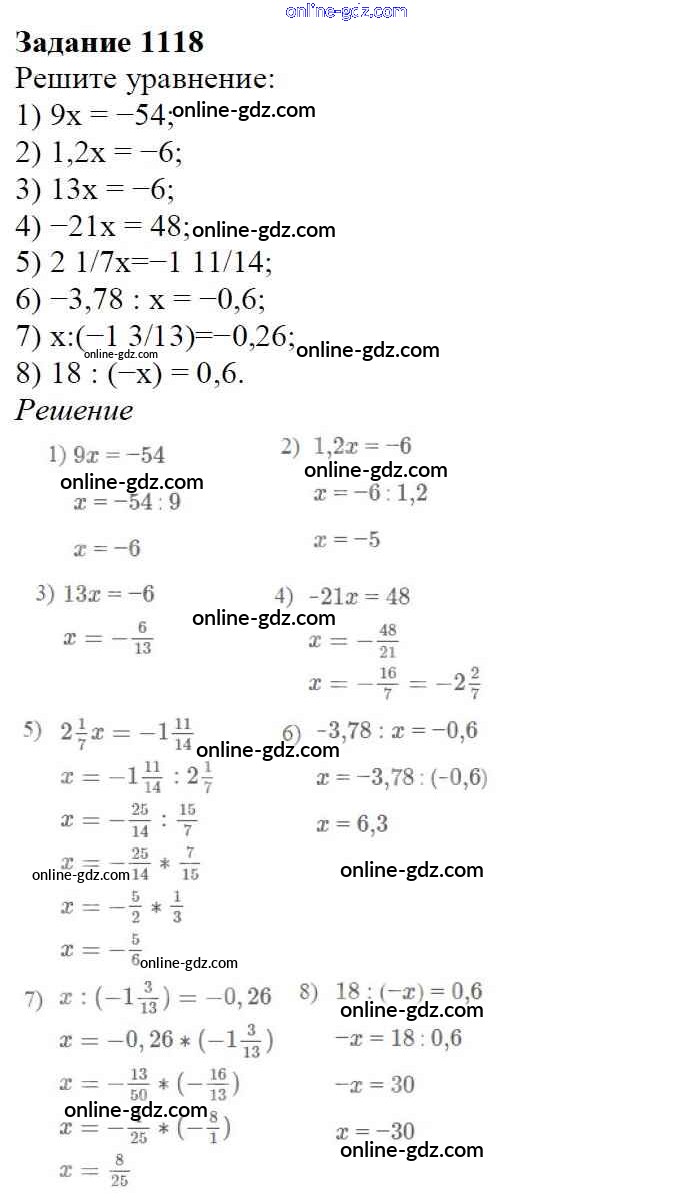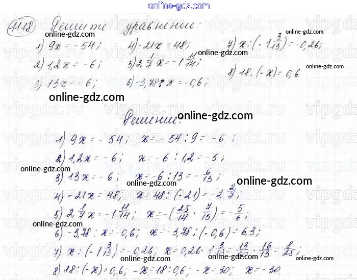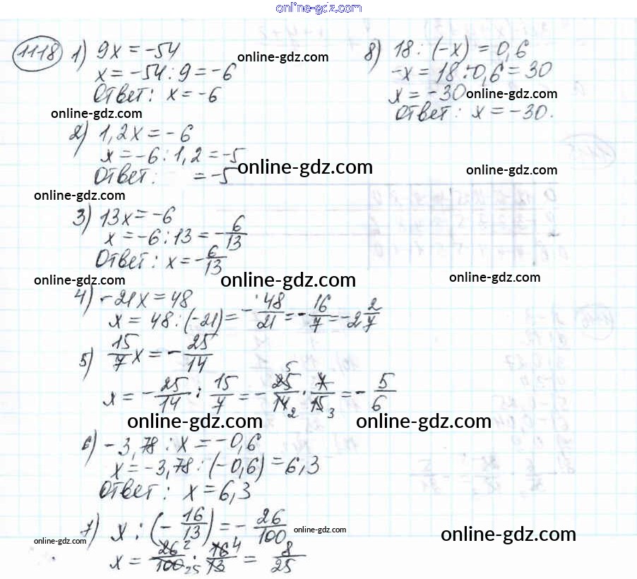 Готовые домашние задания по Математике за 6 класс Учебник Мерзляк, Полонский Алгоритм успеха 2016 - Глава 4. Рациональные числа и действия над ними (упражнения) 1118