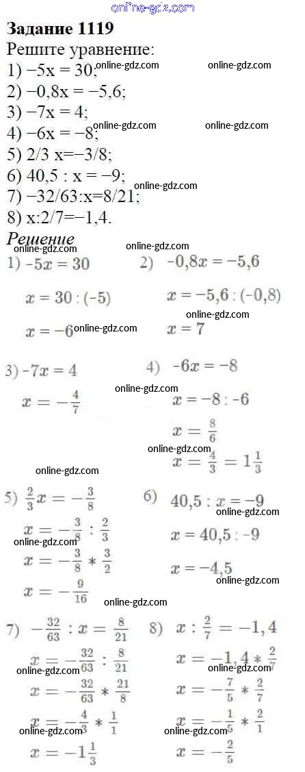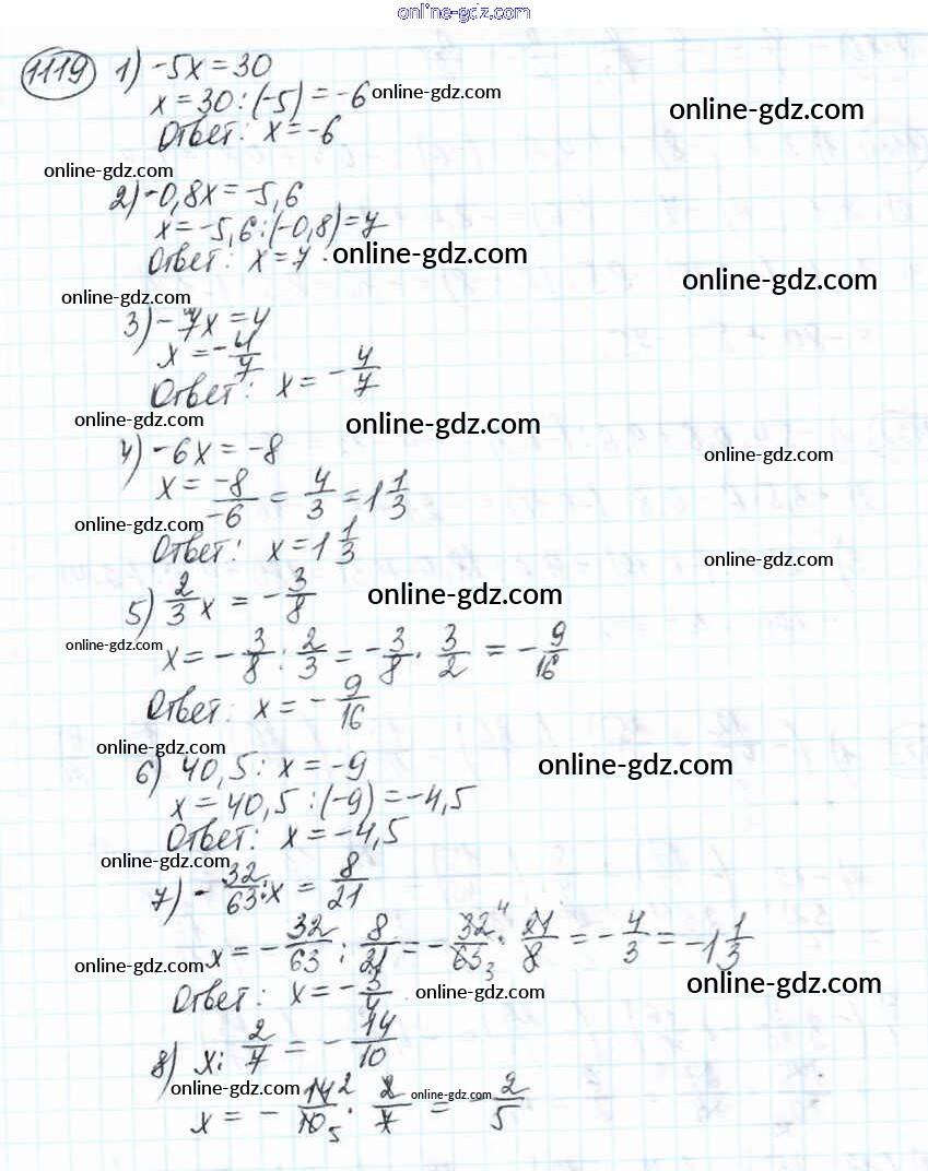 Готовые домашние задания по Математике за 6 класс Учебник Мерзляк, Полонский Алгоритм успеха 2016 - Глава 4. Рациональные числа и действия над ними (упражнения) 1119