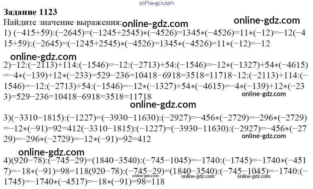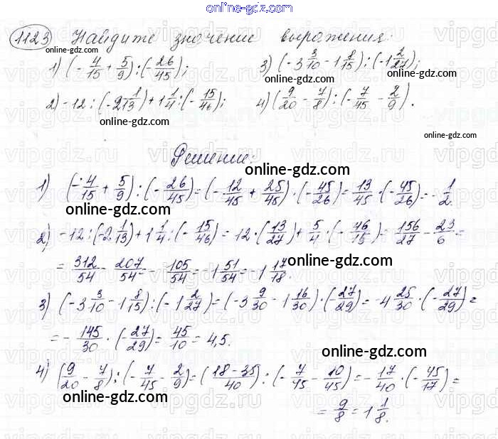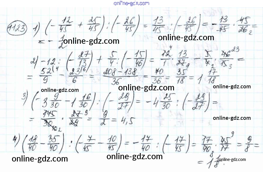 Готовые домашние задания по Математике за 6 класс Учебник Мерзляк, Полонский Алгоритм успеха 2016 - Глава 4. Рациональные числа и действия над ними (упражнения) 1123