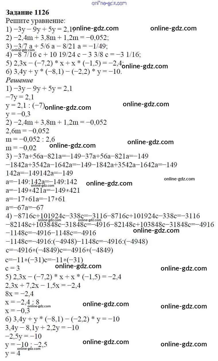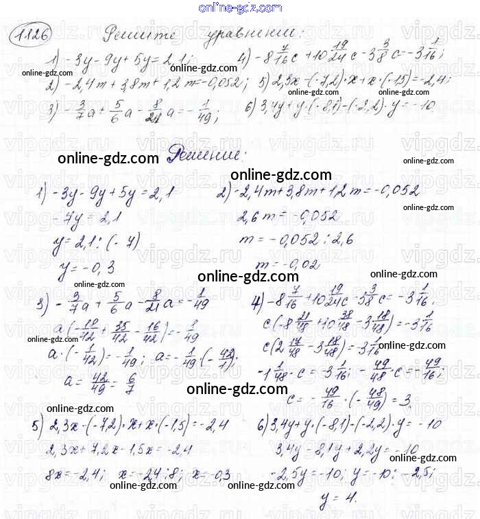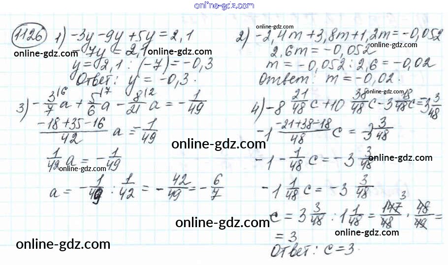 Готовые домашние задания по Математике за 6 класс Учебник Мерзляк, Полонский Алгоритм успеха 2016 - Глава 4. Рациональные числа и действия над ними (упражнения) 1126