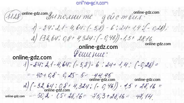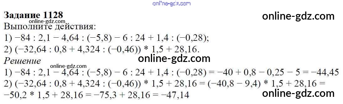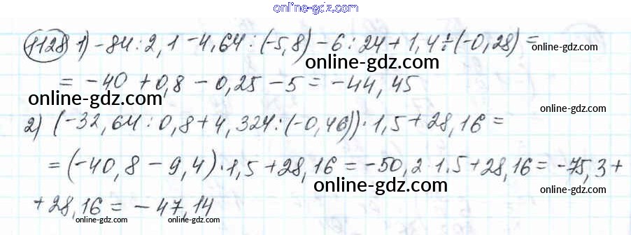 Готовые домашние задания по Математике за 6 класс Учебник Мерзляк, Полонский Алгоритм успеха 2016 - Глава 4. Рациональные числа и действия над ними (упражнения) 1128