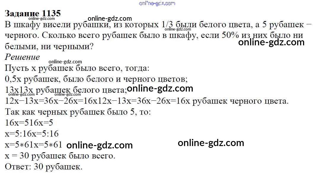 Готовые домашние задания по Математике за 6 класс Учебник Мерзляк, Полонский Алгоритм успеха 2016 - Глава 4. Рациональные числа и действия над ними (упражнения) 1135