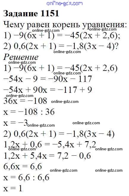 Готовые домашние задания по Математике за 6 класс Учебник Мерзляк, Полонский Алгоритм успеха 2016 - Глава 4. Рациональные числа и действия над ними (упражнения) 1151