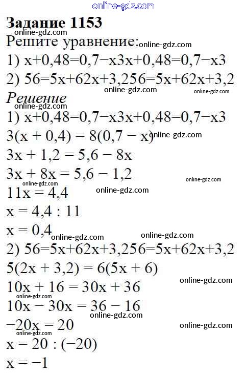 Готовые домашние задания по Математике за 6 класс Учебник Мерзляк, Полонский Алгоритм успеха 2016 - Глава 4. Рациональные числа и действия над ними (упражнения) 1153