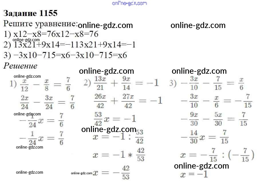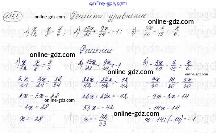Готовые домашние задания по Математике за 6 класс Учебник Мерзляк, Полонский Алгоритм успеха 2016 - Глава 4. Рациональные числа и действия над ними (упражнения) 1155