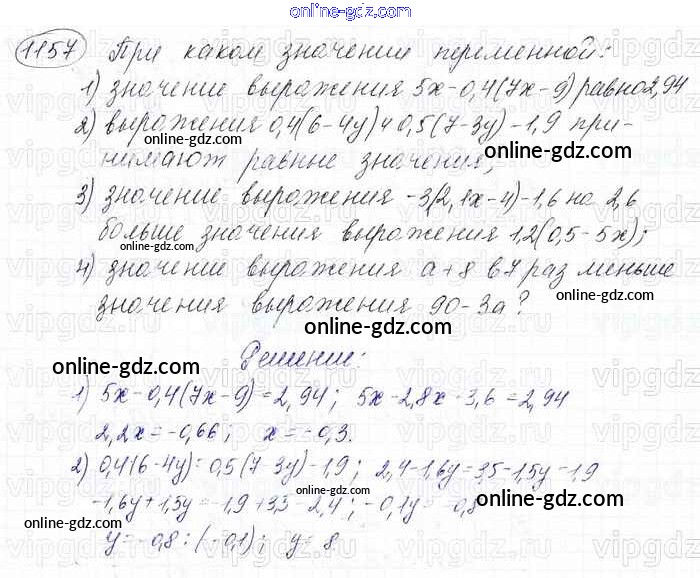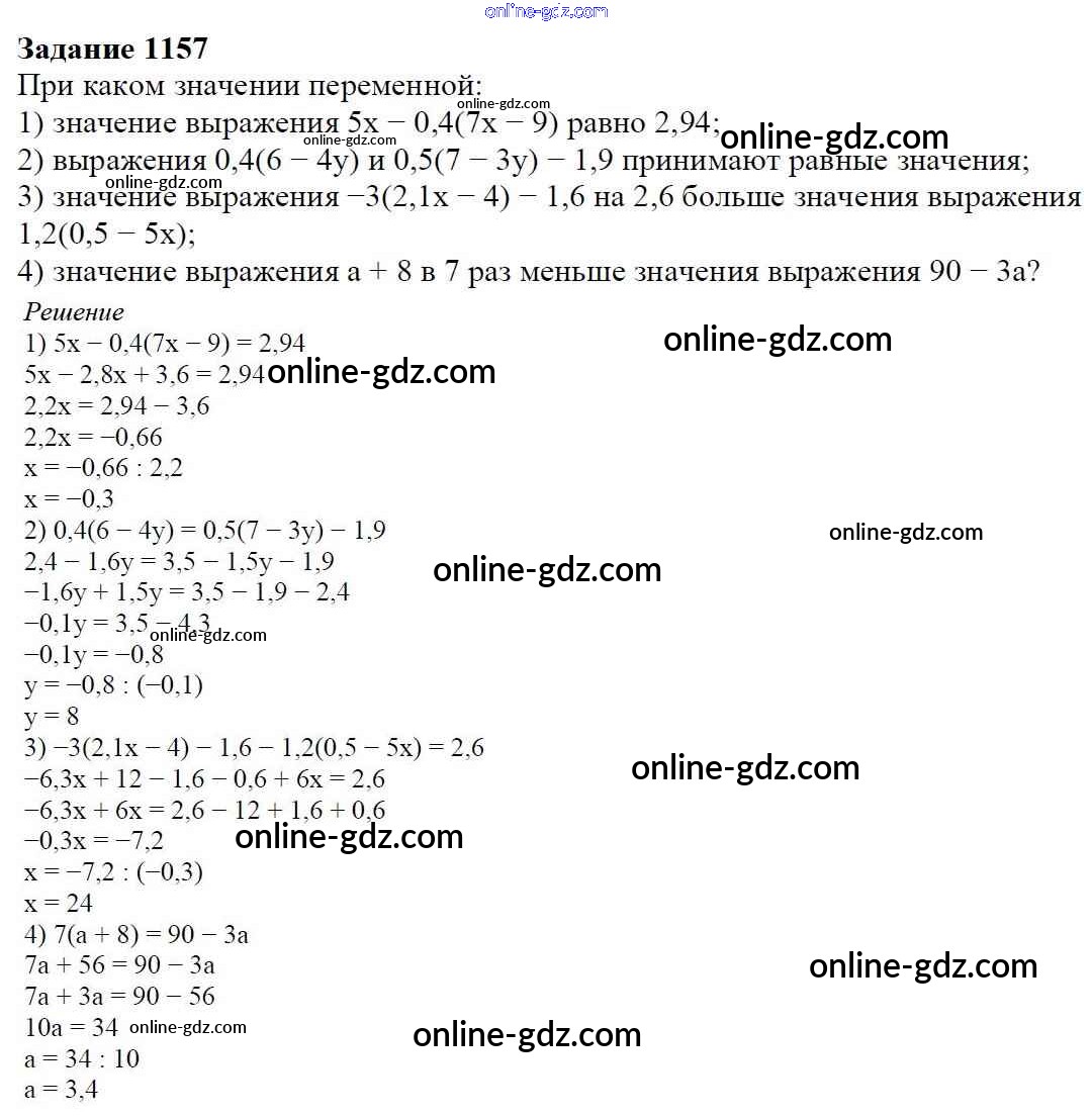 Готовые домашние задания по Математике за 6 класс Учебник Мерзляк, Полонский Алгоритм успеха 2016 - Глава 4. Рациональные числа и действия над ними (упражнения) 1157