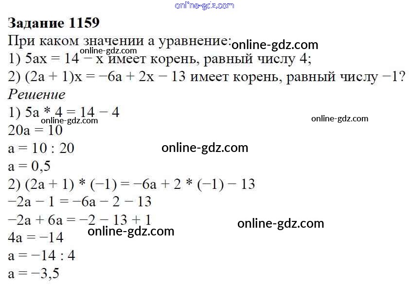 Готовые домашние задания по Математике за 6 класс Учебник Мерзляк, Полонский Алгоритм успеха 2016 - Глава 4. Рациональные числа и действия над ними (упражнения) 1159