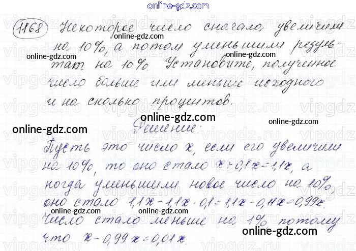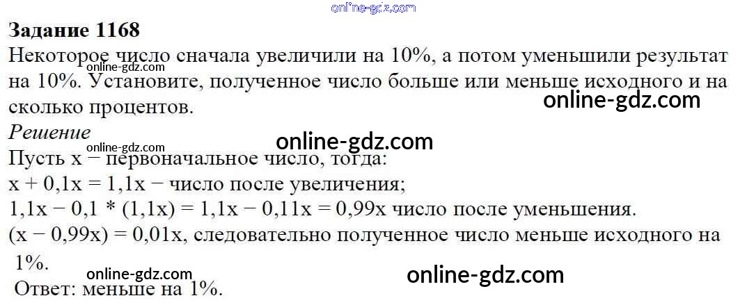 Готовые домашние задания по Математике за 6 класс Учебник Мерзляк, Полонский Алгоритм успеха 2016 - Глава 4. Рациональные числа и действия над ними (упражнения) 1168