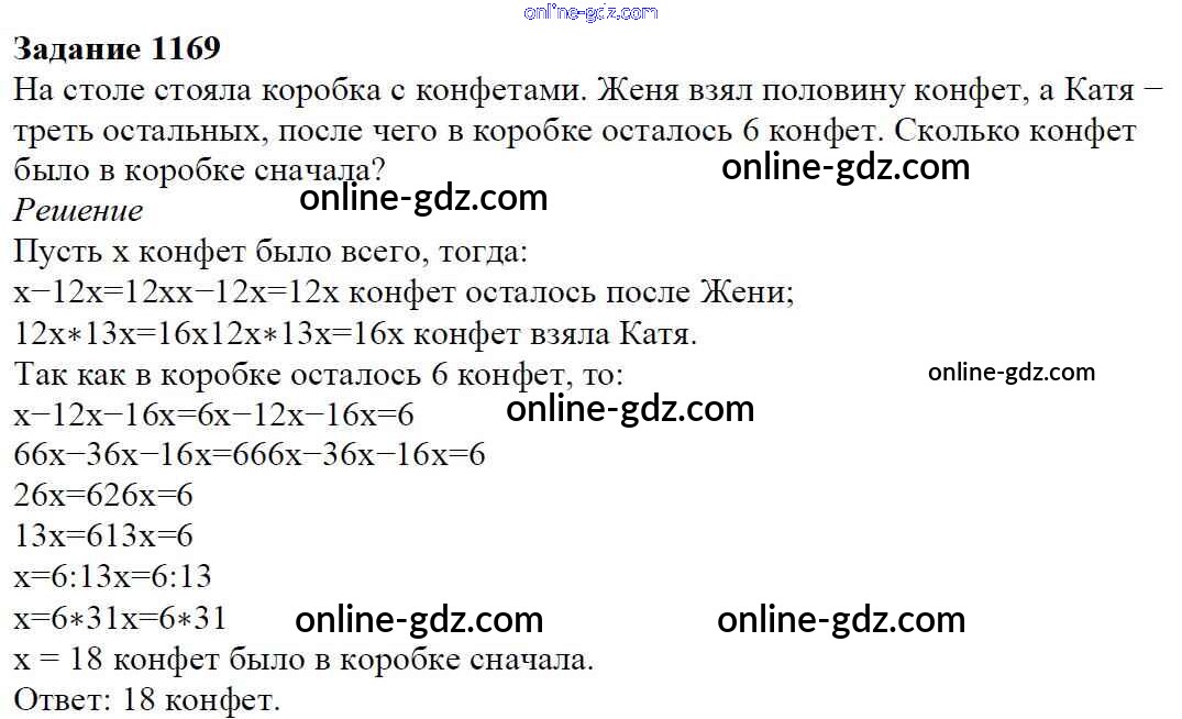 Готовые домашние задания по Математике за 6 класс Учебник Мерзляк, Полонский Алгоритм успеха 2016 - Глава 4. Рациональные числа и действия над ними (упражнения) 1169