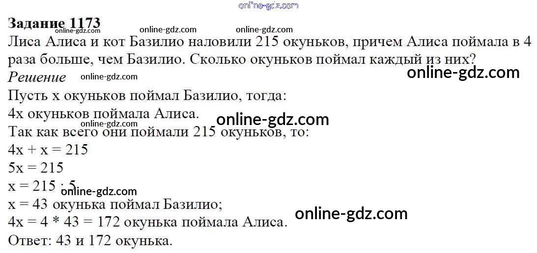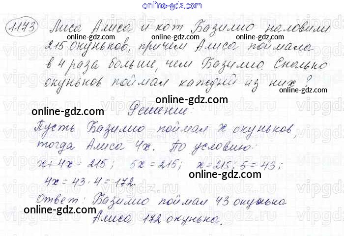 Готовые домашние задания по Математике за 6 класс Учебник Мерзляк, Полонский Алгоритм успеха 2016 - Глава 4. Рациональные числа и действия над ними (упражнения) 1173