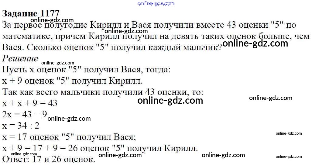 Готовые домашние задания по Математике за 6 класс Учебник Мерзляк, Полонский Алгоритм успеха 2016 - Глава 4. Рациональные числа и действия над ними (упражнения) 1177