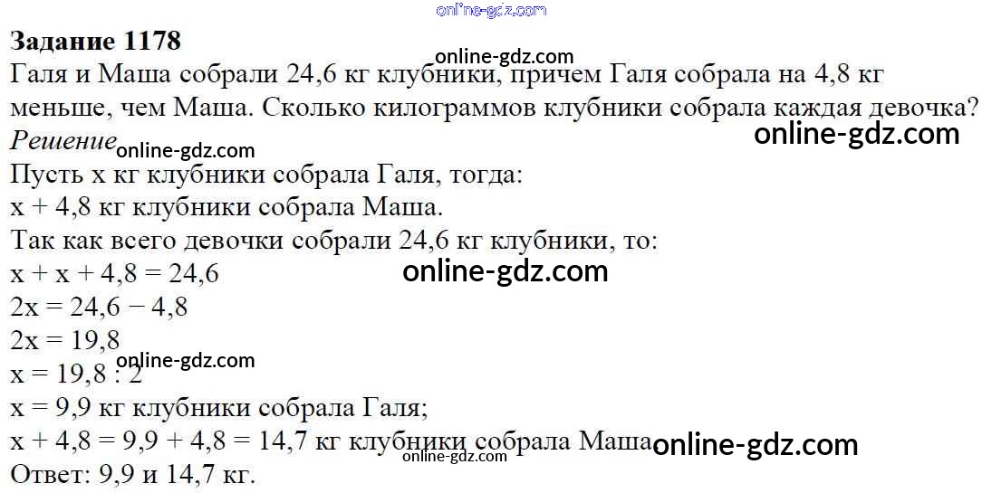 Готовые домашние задания по Математике за 6 класс Учебник Мерзляк, Полонский Алгоритм успеха 2016 - Глава 4. Рациональные числа и действия над ними (упражнения) 1178