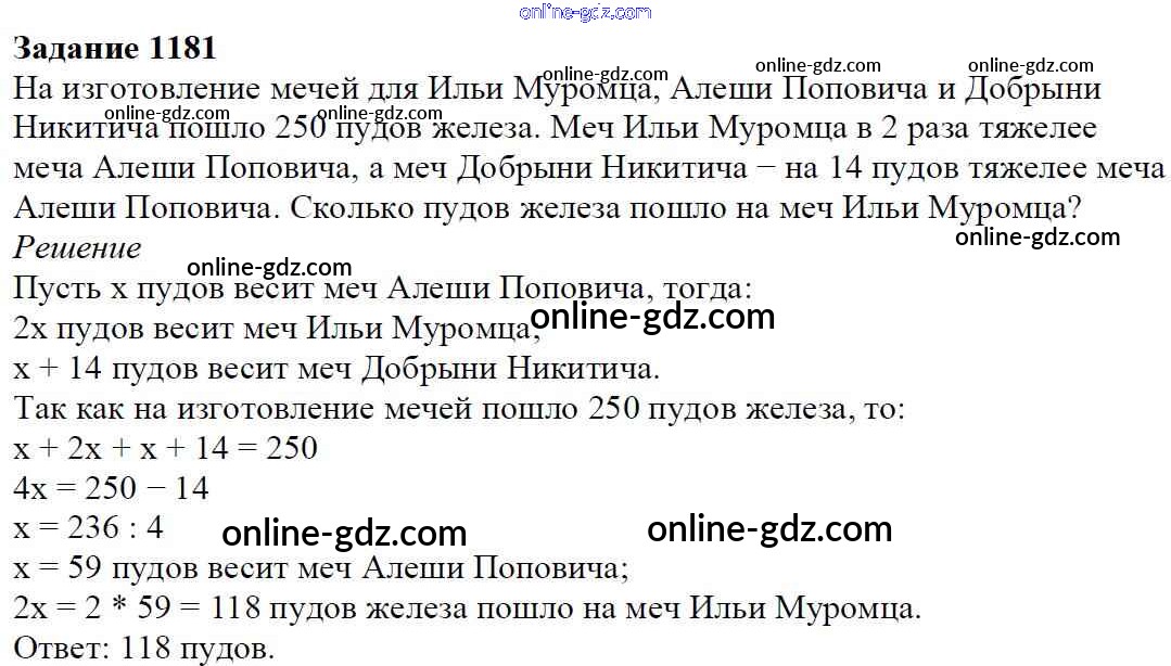 Готовые домашние задания по Математике за 6 класс Учебник Мерзляк, Полонский Алгоритм успеха 2016 - Глава 4. Рациональные числа и действия над ними (упражнения) 1181