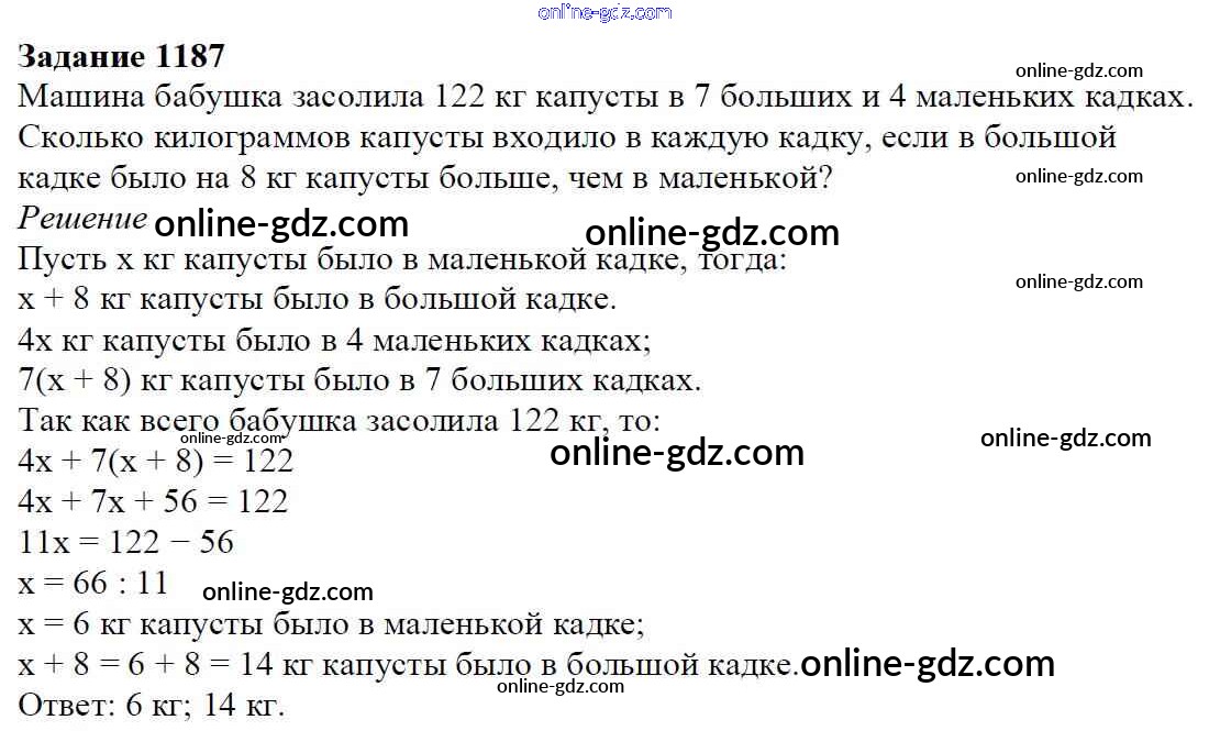 Готовые домашние задания по Математике за 6 класс Учебник Мерзляк, Полонский Алгоритм успеха 2016 - Глава 4. Рациональные числа и действия над ними (упражнения) 1187