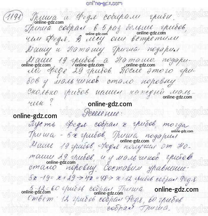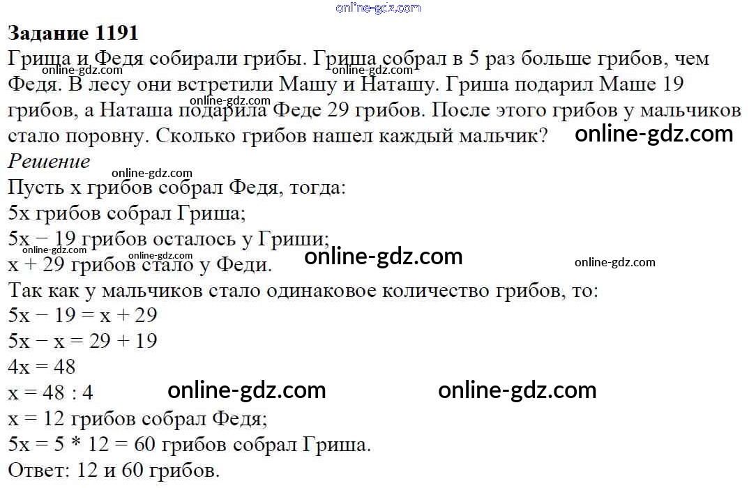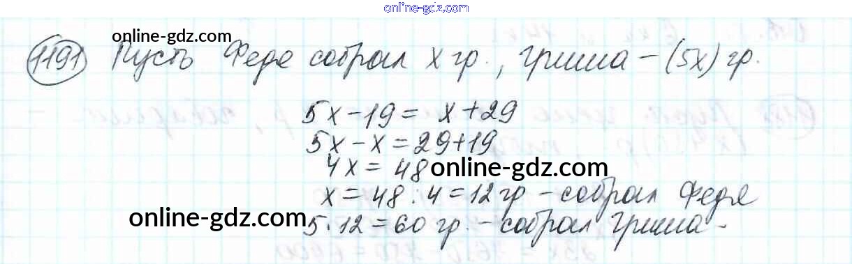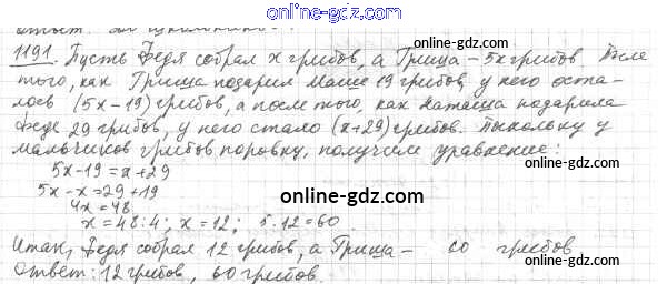 Готовые домашние задания по Математике за 6 класс Учебник Мерзляк, Полонский Алгоритм успеха 2016 - Глава 4. Рациональные числа и действия над ними (упражнения) 1191