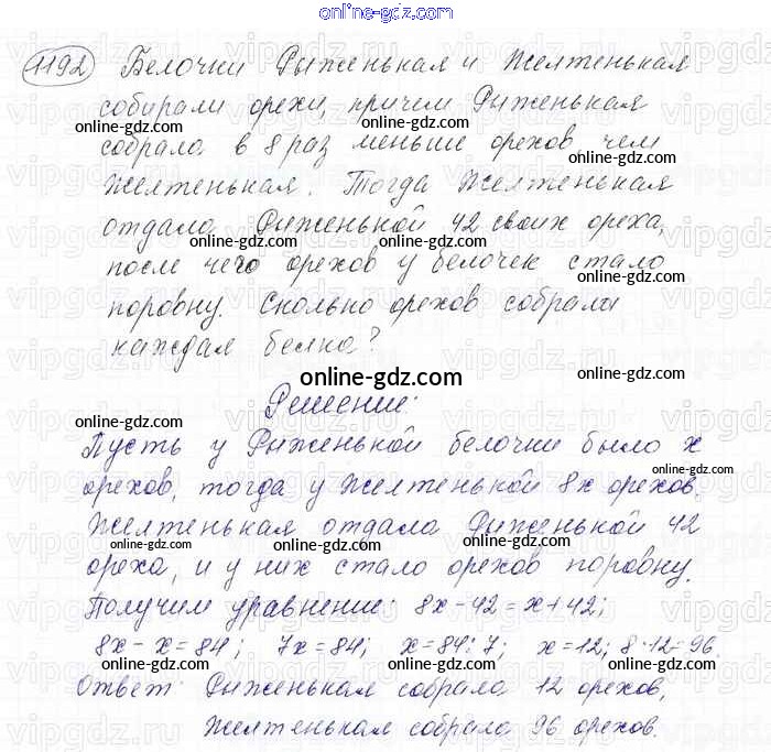 Готовые домашние задания по Математике за 6 класс Учебник Мерзляк, Полонский Алгоритм успеха 2016 - Глава 4. Рациональные числа и действия над ними (упражнения) 1192